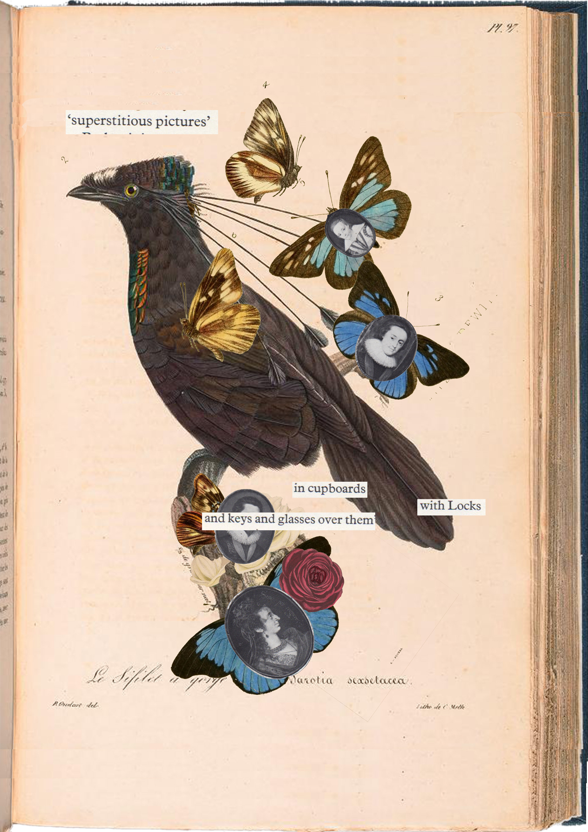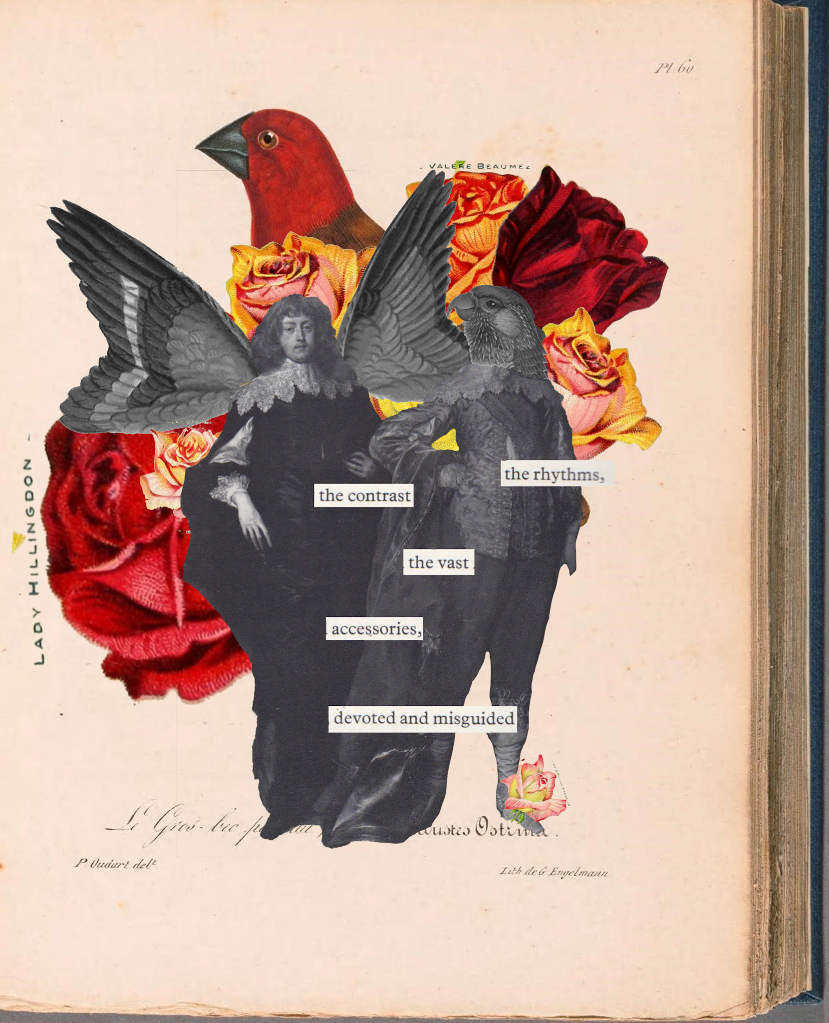 Collage central image and text from 'The Age of Charles I, Painting in England, 1620-1649' by Oliver Millar, The Tate Gallery, 1972.